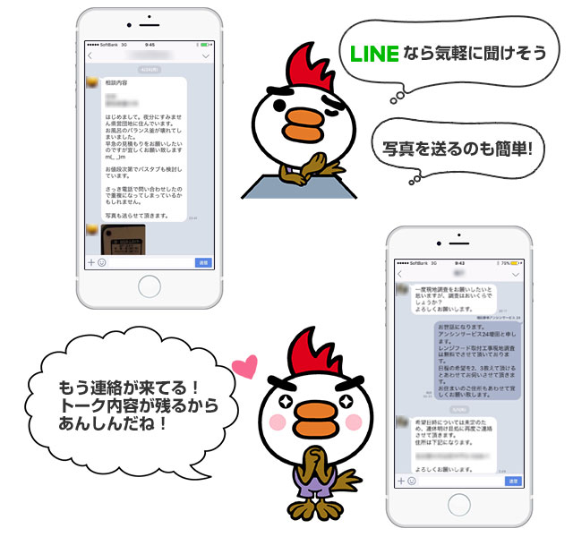 LINEで相談では、アンシンサービス24の施工スタッフが直接お客様とLINEでやりとりして