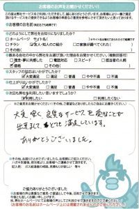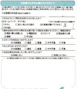 今回の工事について大変満足とのお声を頂きました。 次回も利用したいと嬉しいお声を頂きました。